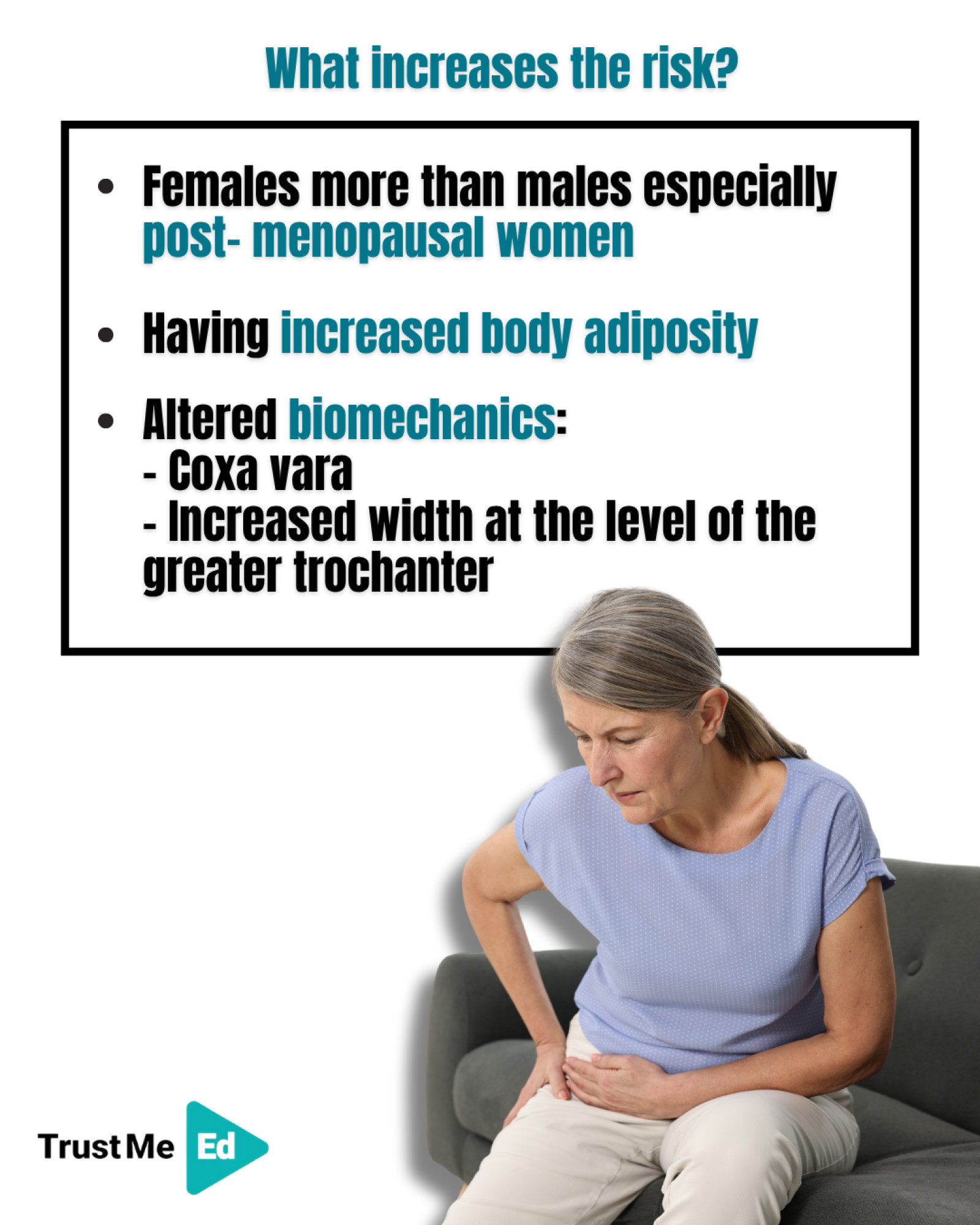 Structural factors like a low femoral neck-shaft angle (coxa vara) or a wide greater trochanter increase compression and may predispose individuals to GTPS.