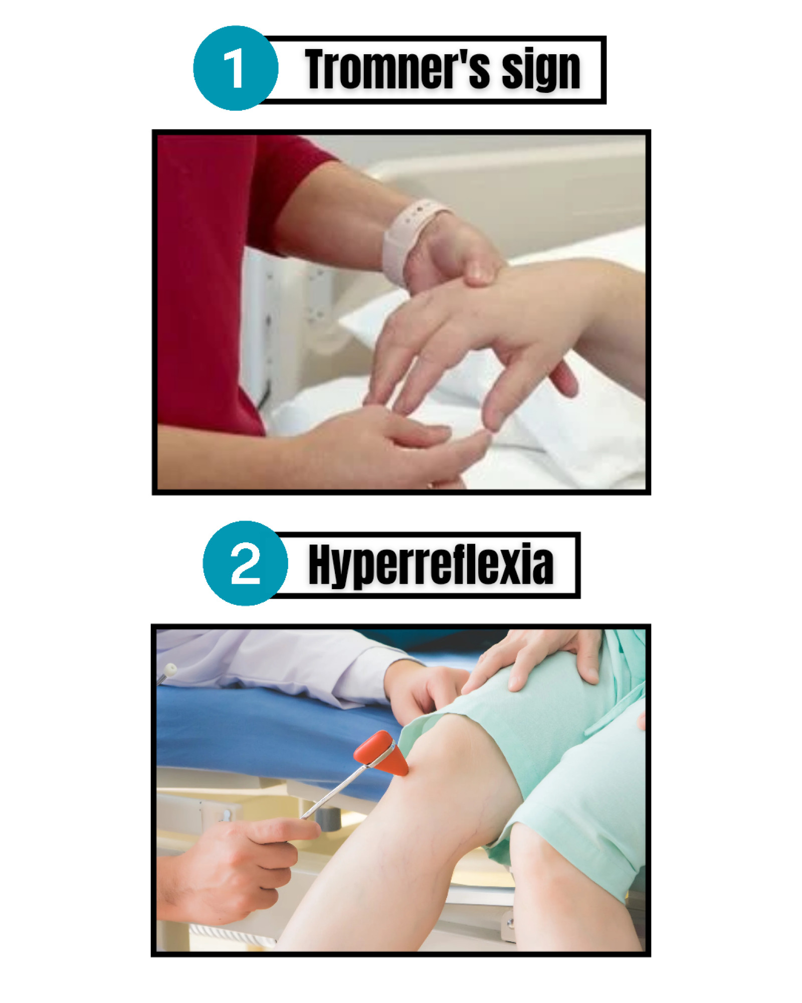 · The finger flexor muscles (C7/C8), controlled by UMN pathways, are overactive